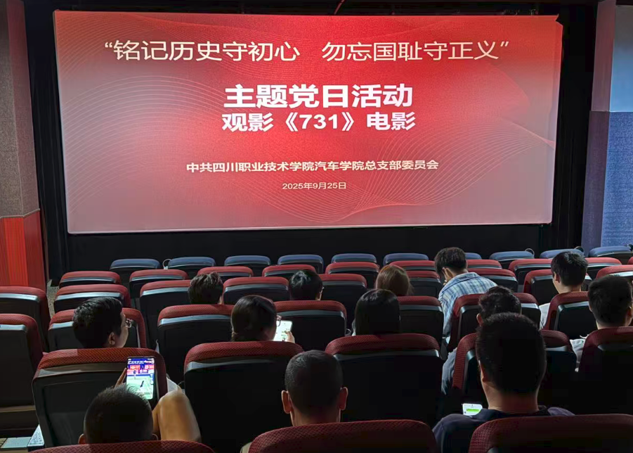 为深刻领会伟大抗战精神实质,深化爱国主义教育,传承红色基因,2025年9月25日,四川职业技术学院汽车学院党总支组织全体党员开展观影主题党日活动,以历史影像为载体,重温民族苦难记忆,凝聚奋进力量。