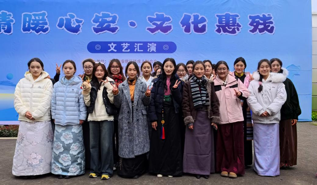 活动现场,暖意融融。上午9时活动正式拉开帷幕。四川职业技术学院汽车学院的同学们带来了精心筹备的7个节目,形式涵盖舞蹈、歌曲、诗朗诵等,内容紧扣温暖励志主题。舞蹈《格萨尔王》《菩提树根》《芒康弦子魂》舞姿舒展、意蕴悠长,展现出青年蓬勃的生命力;歌曲《光亮》《飞》旋律激昂、歌词励志,传递出勇敢追梦的信念;《青稞酒》《吉祥新婚》等充满民族风情的舞蹈,更是让现场掌声不断。表演过程中,同学们还精心设计了歌曲合唱、简单手势互动等环节,邀请残疾人朋友积极参与,让大家在互动中感受陪伴与尊重,现场洋溢着欢声笑语。