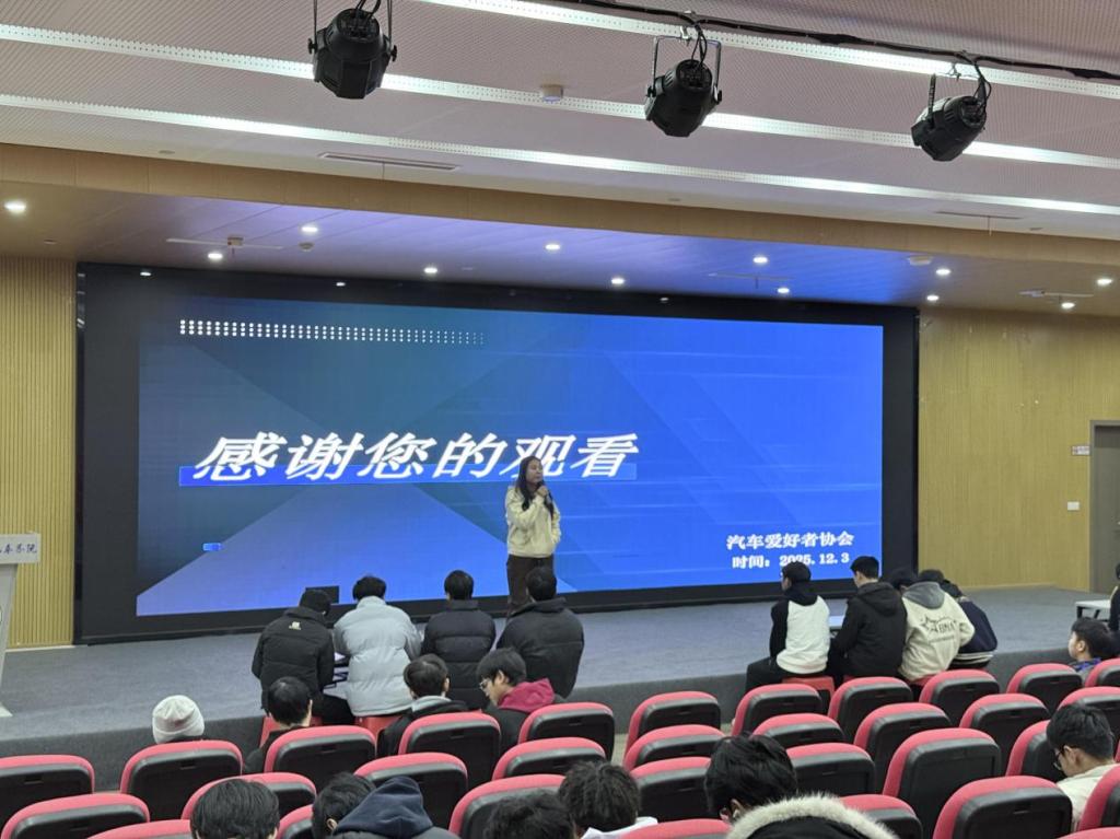 为培养知识应用与团队协作能力,激发学生探索热情,丰富校园文化生活,汽车学院举办“汽车经纪人火种节”知识大赛。总决赛于2025年12月8日晚在学术报告厅隆重举行。学院专业教师赵旋、夏磊、李飞飞、辅导员代表张雨雯以及200余名学生代表参加了本次活动。